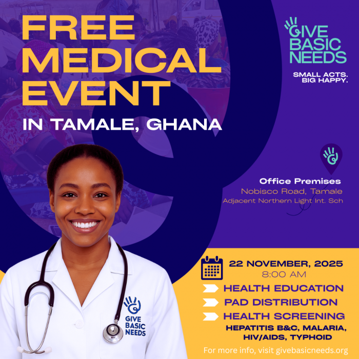 On November 22, 2025, Give Basic Needs successfully executed a major community health outreach initiative held at our Tamale office. This event provided free medical screenings, comprehensive health education, and crucial women’s wellness support, aligning with our mission to strengthen community health and expand access to essential services across Northern Ghana. The success of the